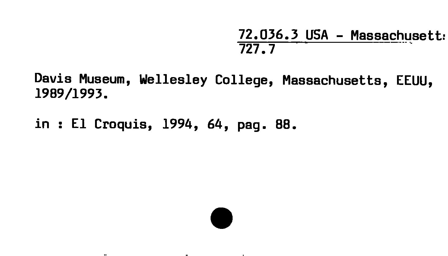 - Davis Museum, Wellesley College, Massachusetts, EEUU, 1989/1993