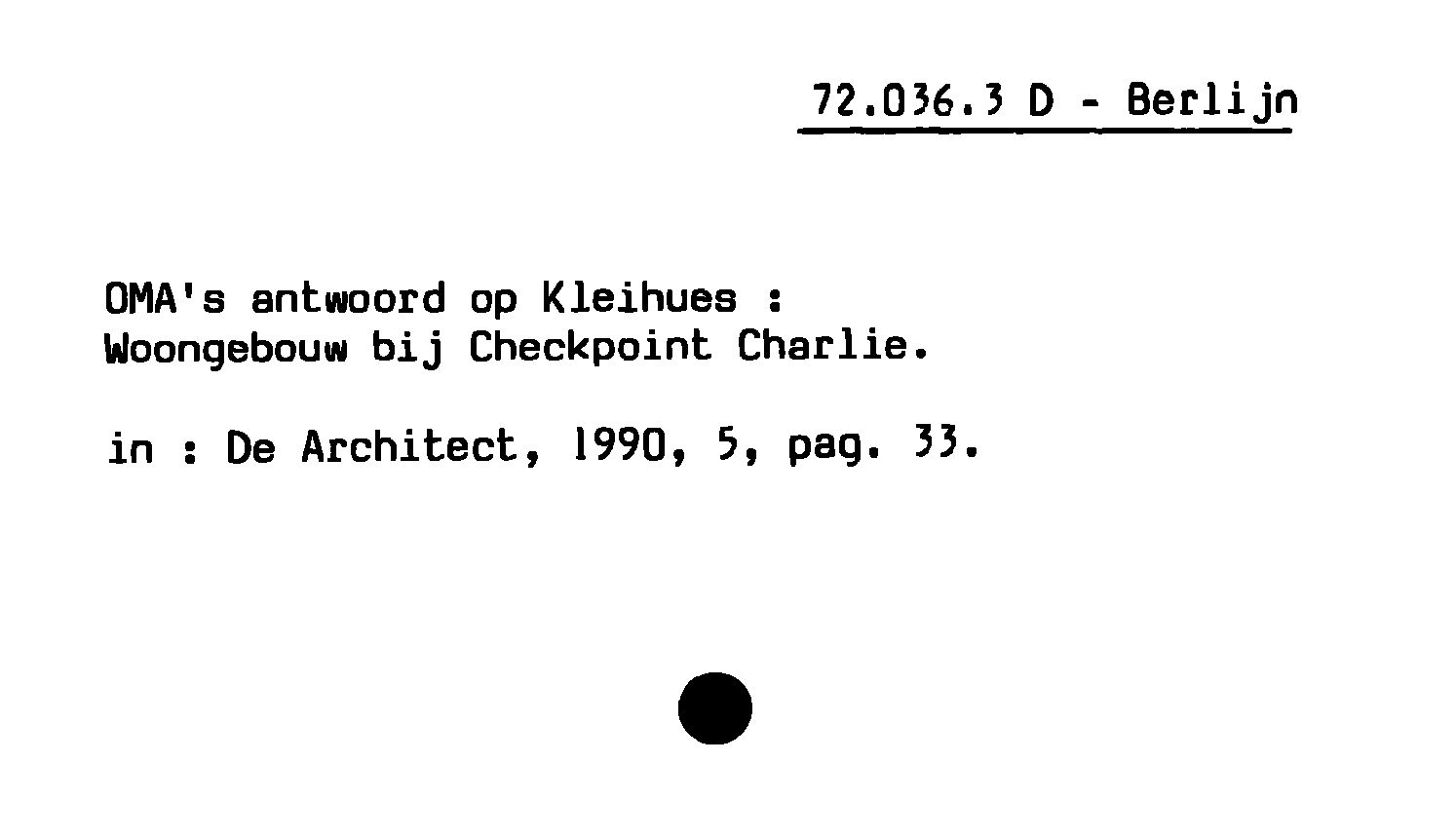 - OMA'S antwoord op Kleihues : woongebouw bij Checkpoint Charlie