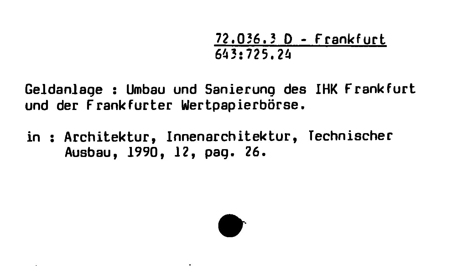- Geldanlage : Umbau und Sanierung des IHK Frankfurt und der Frankfurter Wertpapierbörse