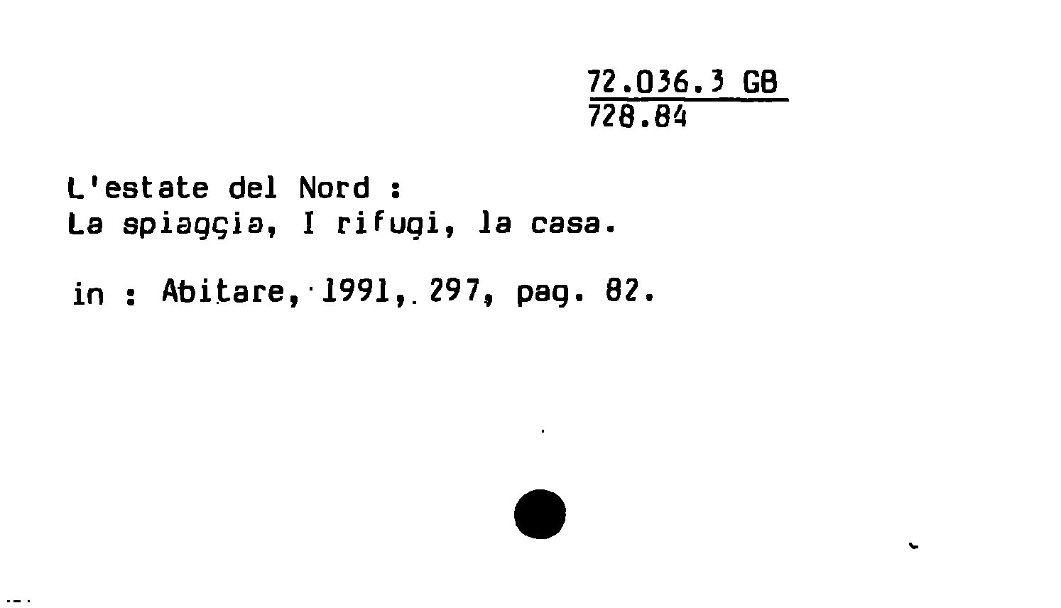 - L'estate del Nord : La spiaggia, I rifugi, La casa