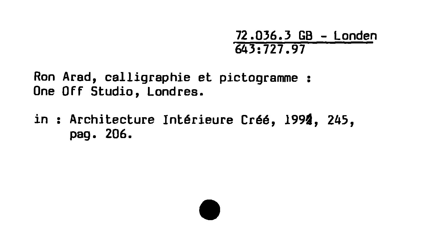- Ron Arad, calligraphie et pictogramme ; One Off Studio, Londres