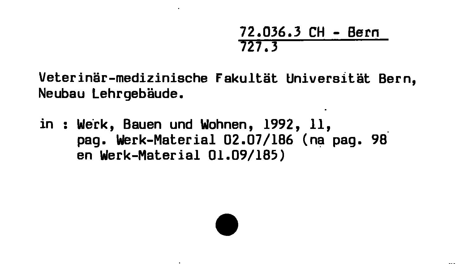 - Veterinär-medizinische Fakultät Universität Bern, Neubau Lehrgebäude