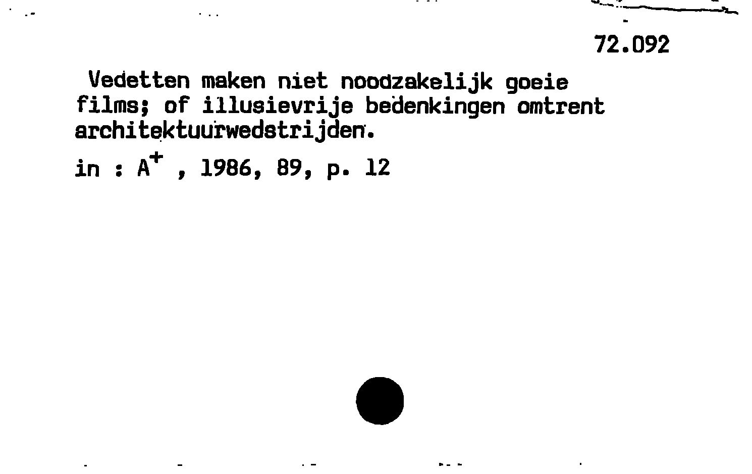 - Vedetten maken niet noodzakelijk goeie films : of illusievrije bedenkingen omtrent architektuurwedstrijden