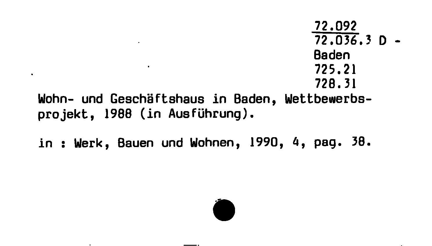 - Wohn- und Geschäftshaus in Baden, Wettbewerbsprojekt, 1988 (in Ausführung)