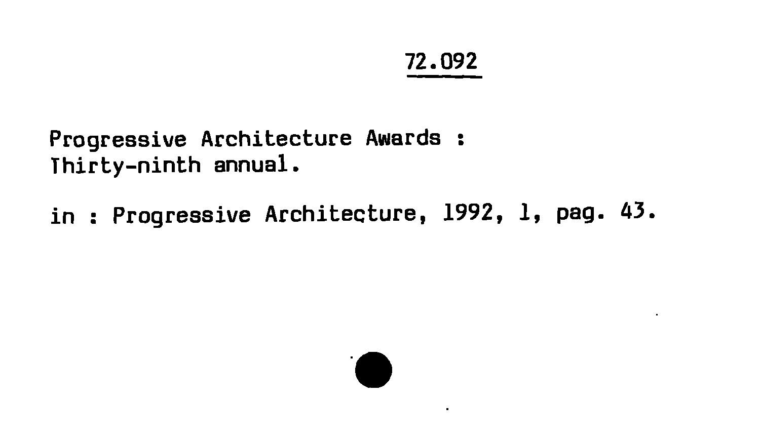 - Progressive Architecture Awards : Thirty-ninth annual