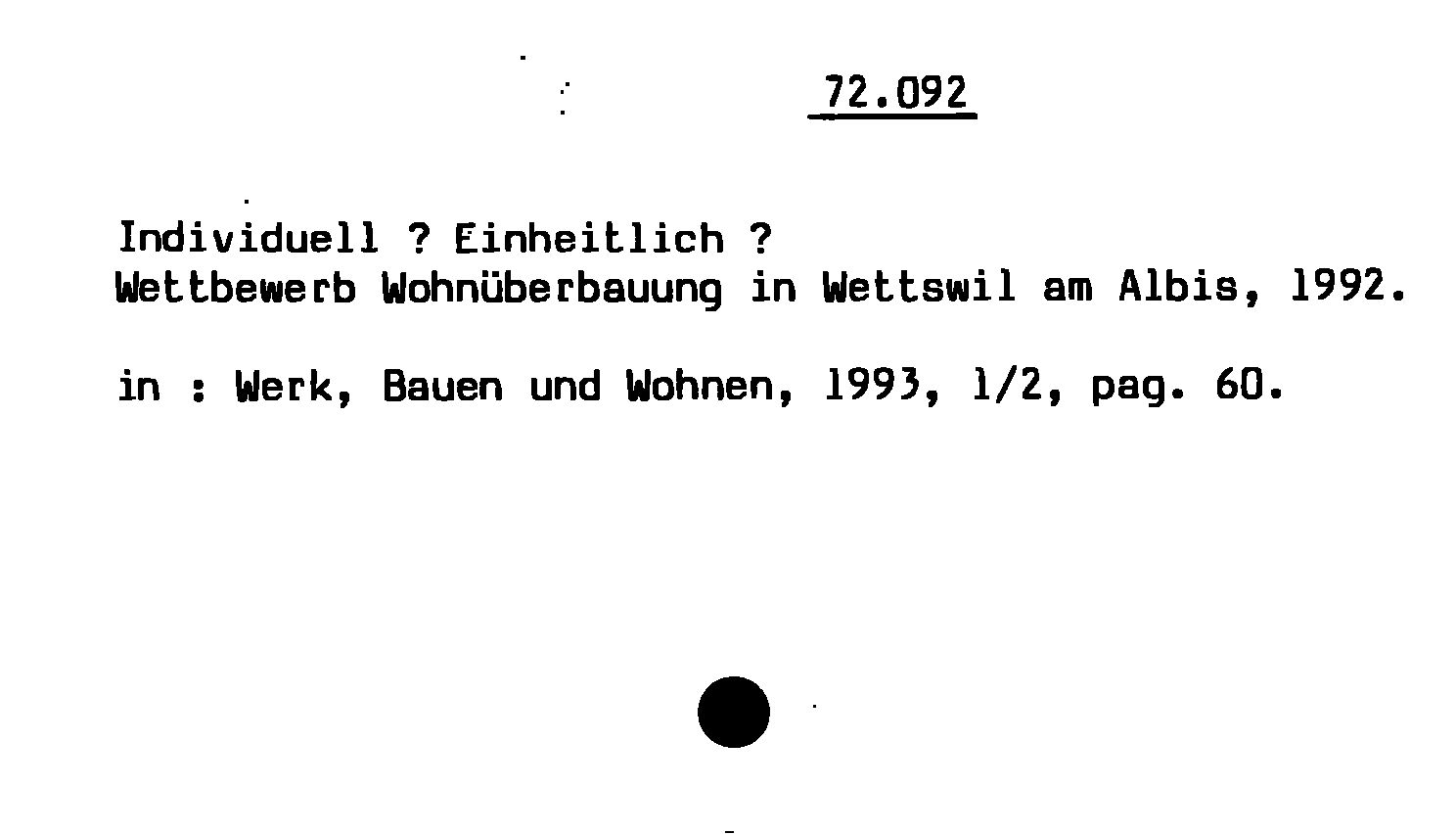 - Individuell ? Einheitlich ? : Wettbewerb wohnüberbauung in Wettswil am Albis, 1992