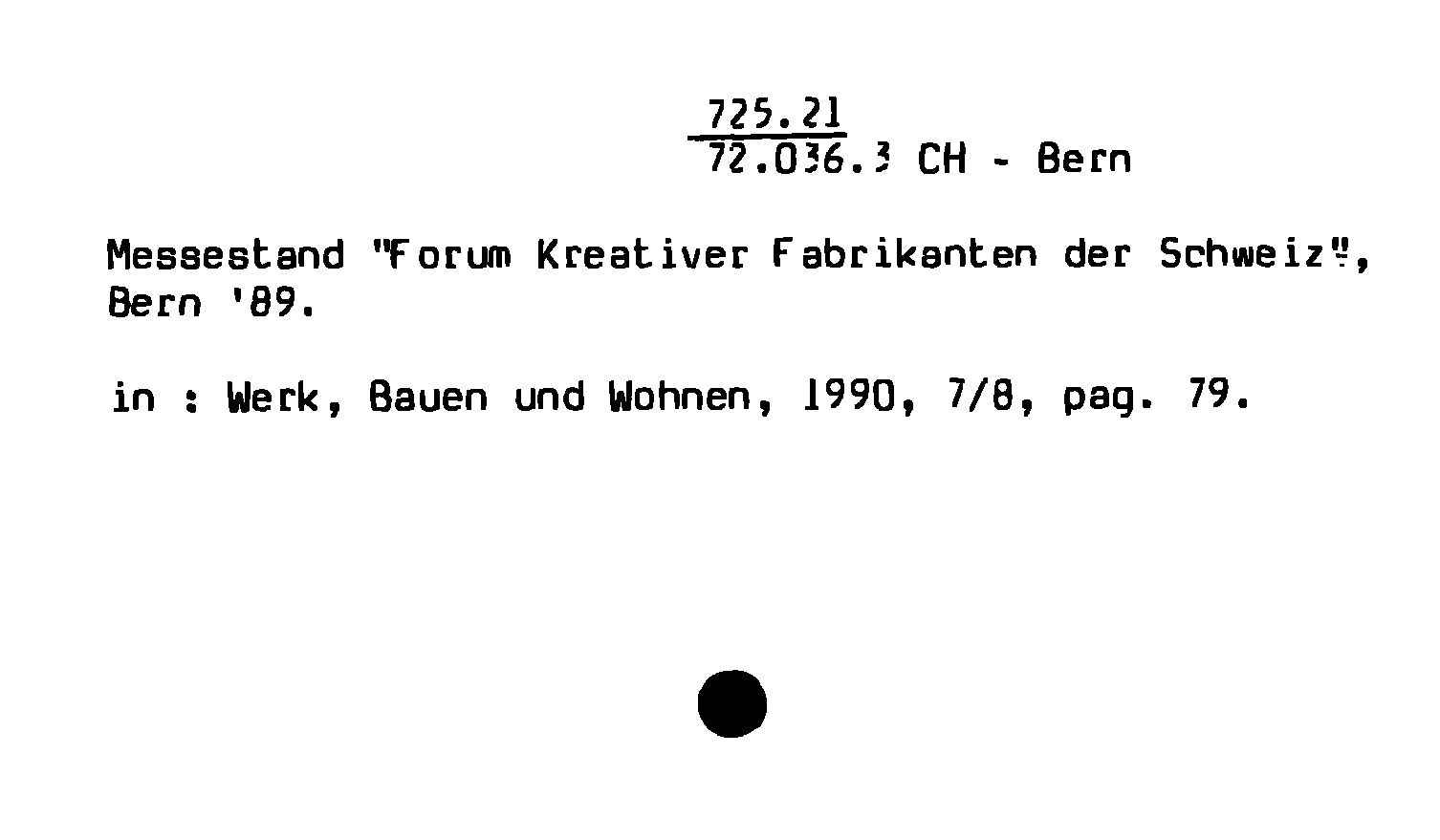 - Messestand "Forum Kreativer Fabrikanten der Schweiz", Bern '89