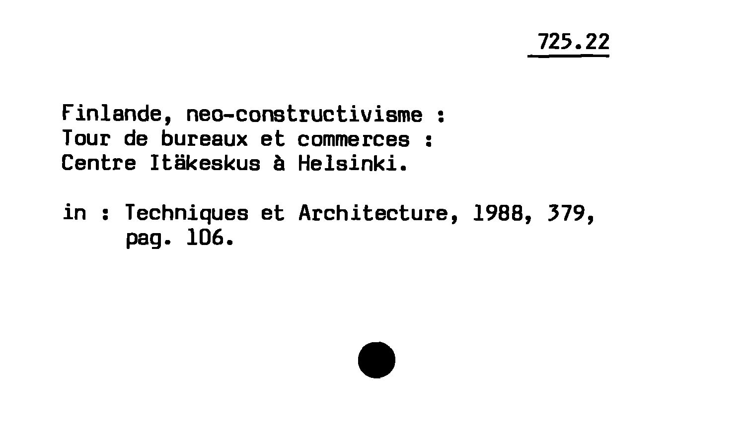- Finlande, neo-constructivisme : Tour de bureaux et commerces ; Centre Itakeskus à Helsinki