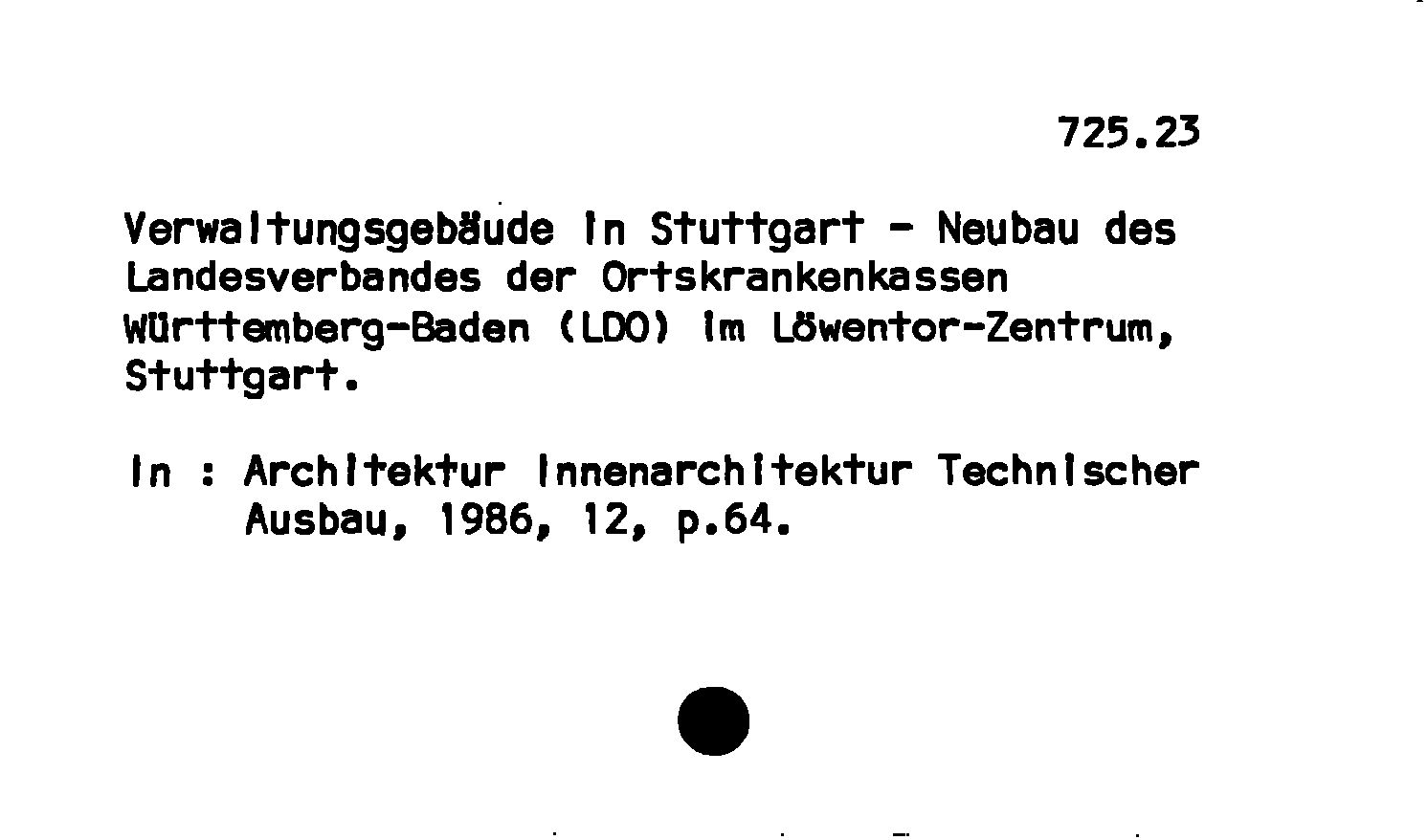 - Verwatungsgebäude in Stuttgart : Neubau des Landesverbandes der Ortskrankenkassen Württemberg-Baden (LDO) im Löwentor-Zentrum, Stuttgart