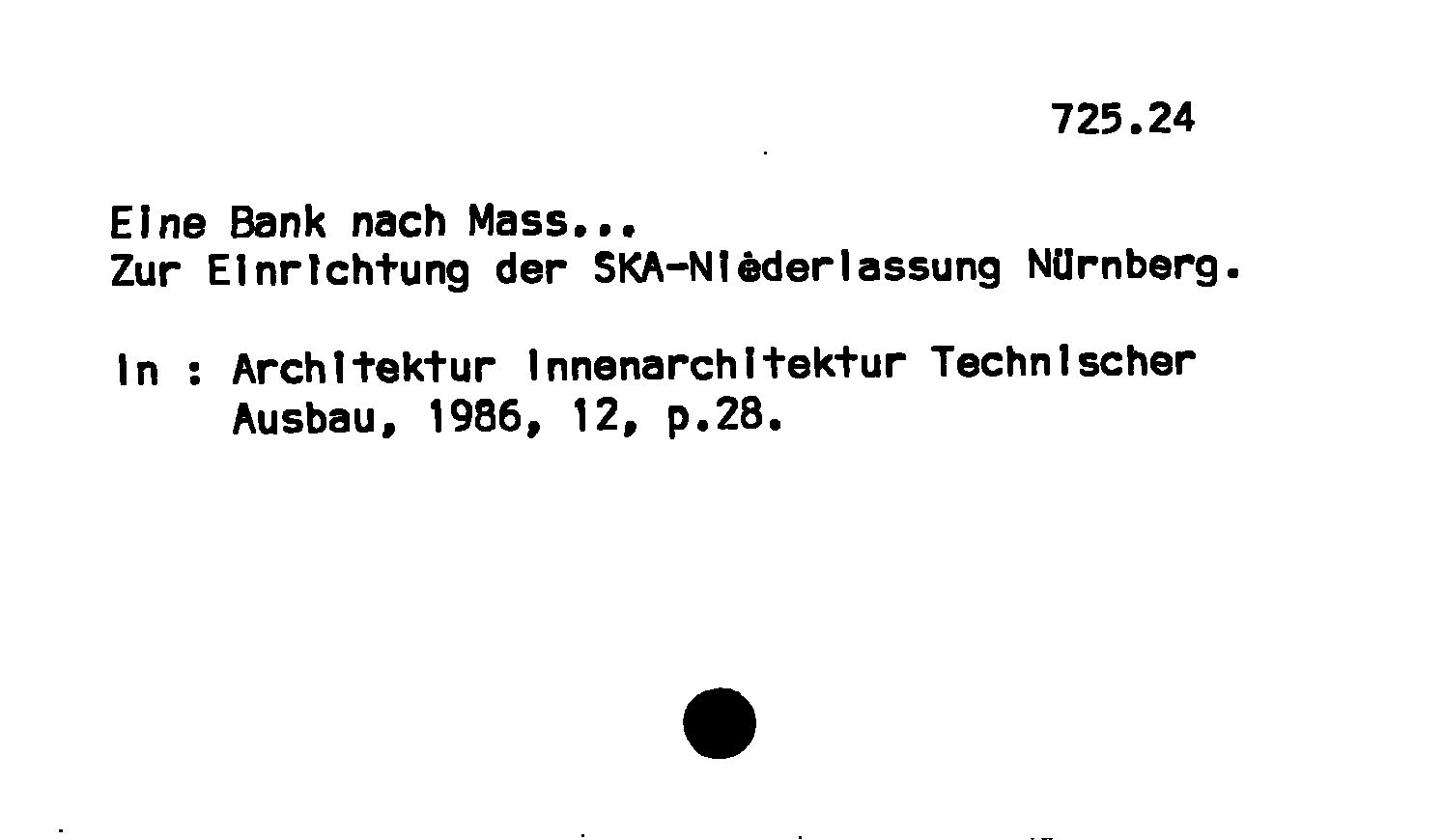 Eine Bank nach Mass. : Zur Einrtchtung der SKA-Niederlassung Nürnberg