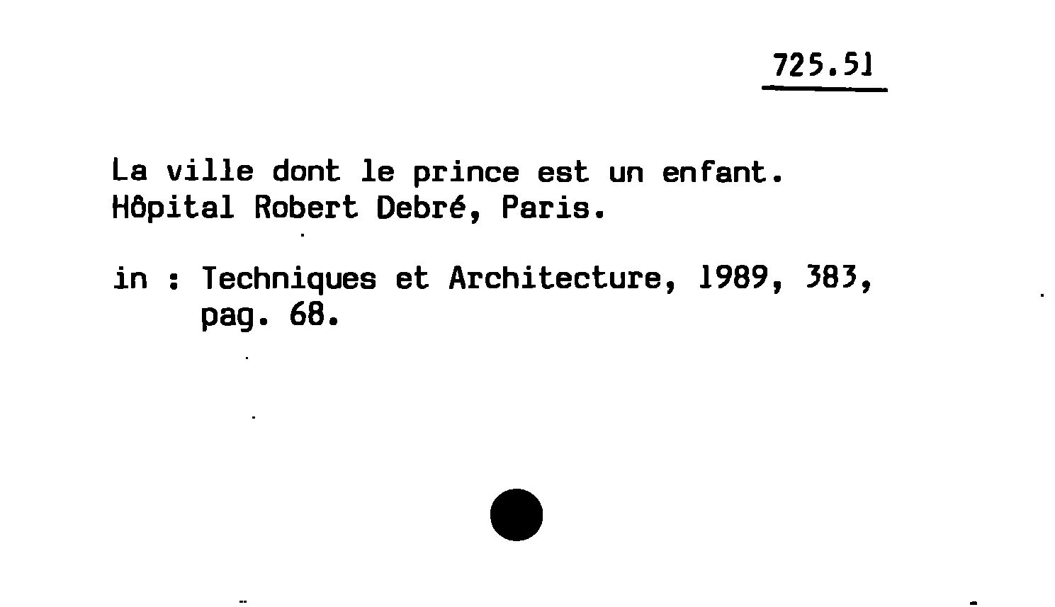 - La ville dont Ie prince est un enfant : Hopital Robert Debré, Paris