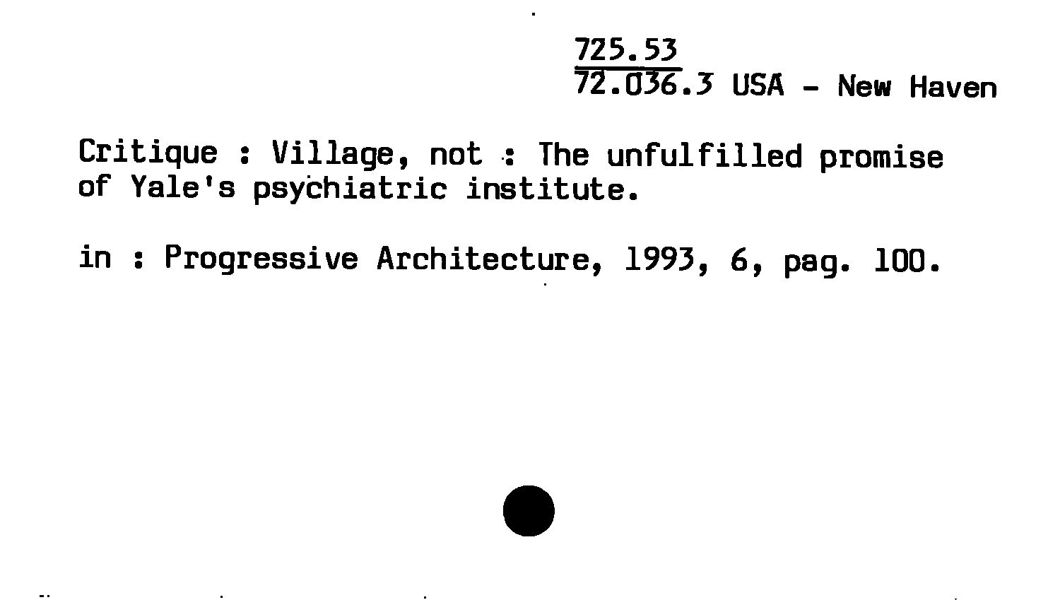 - Critique : Village, not : the unfulfilled promise of Yale's psychiatric institute