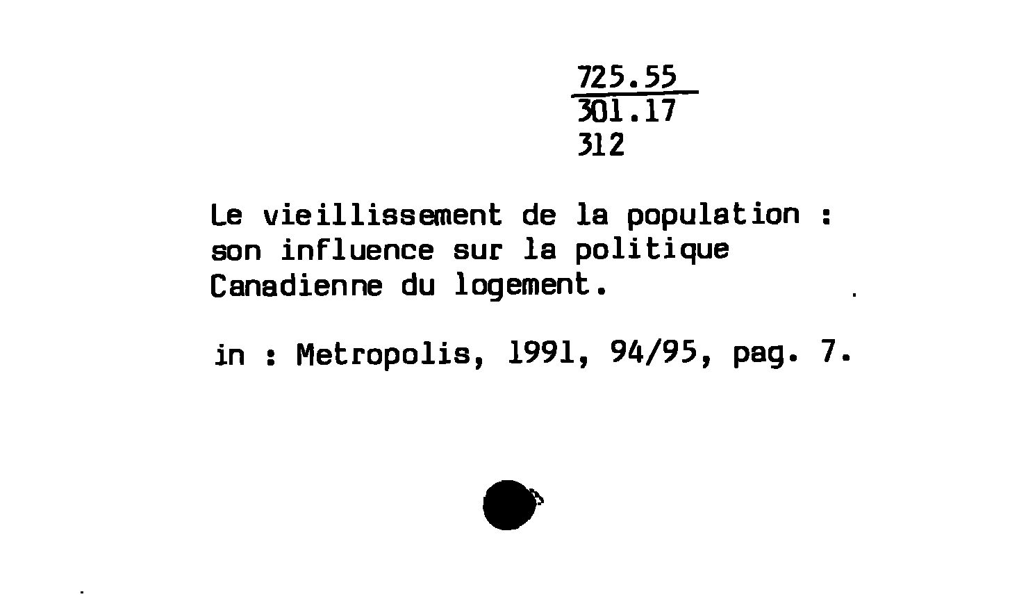 Le vieillissement de la population : Son influence sur la politique Canadienne du logement