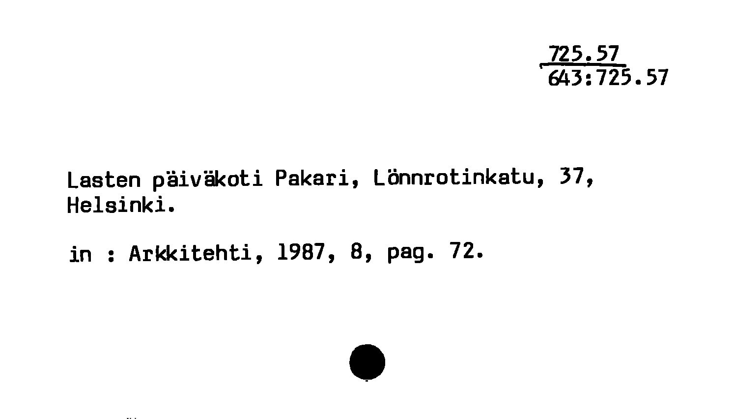 - Lasten päiväkoti Pakari, Lönnrotinkatu, 37, Helsinki