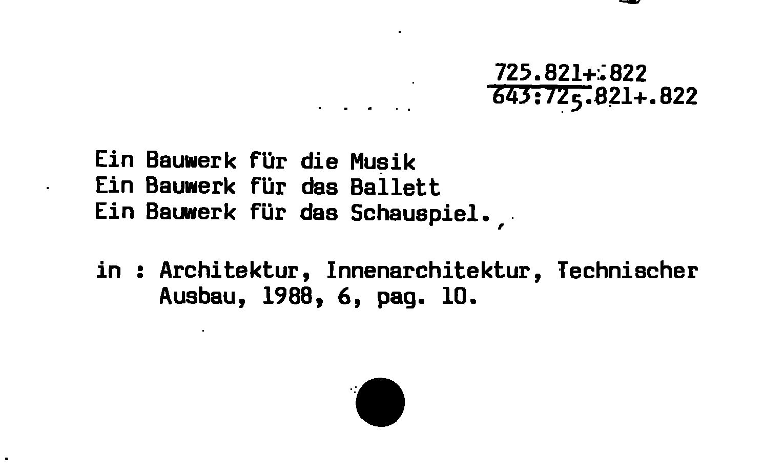 - Ein Bauwerk für die Musik : Ein Bauwerk für das Ballett ; Ein Bauwerk für das Schauspiel
