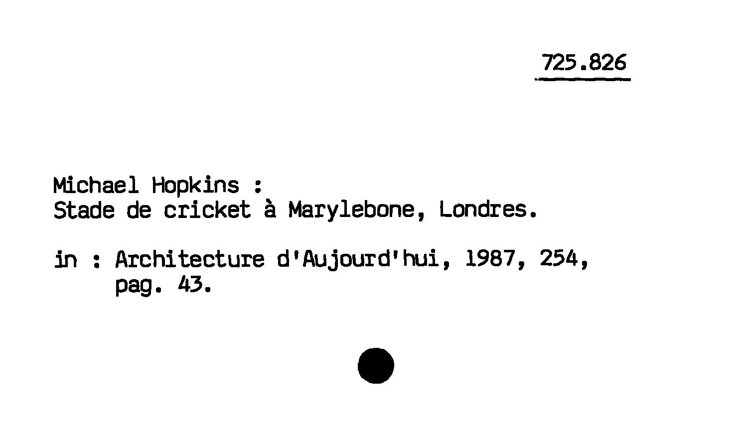 - Michael Hopkins : Stade de cricket a Marylebone, Londres