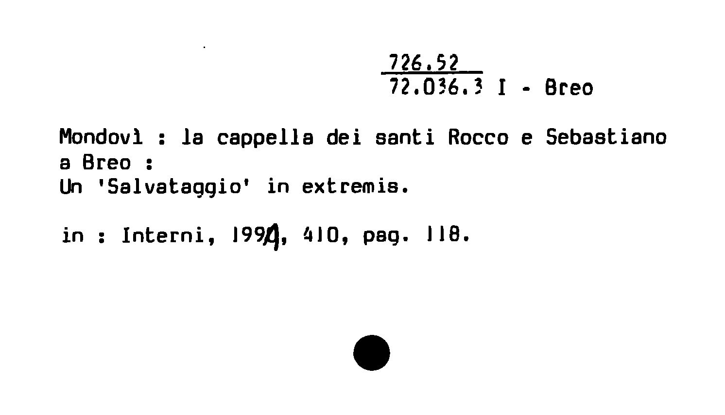 - Mondovi : la cappella dei santi Rocco e Sebastiano a Breo ; Un 'Salvataggio' in extremis