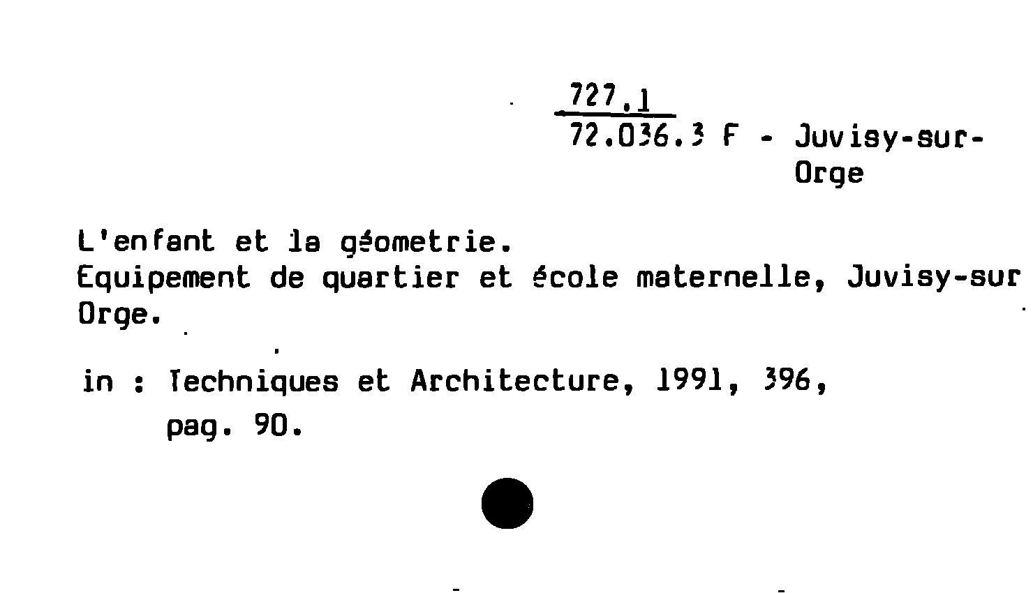 - L'enfant et la géometrie : Equipement de quartier et école maternelle, Juvisy-sur Orge