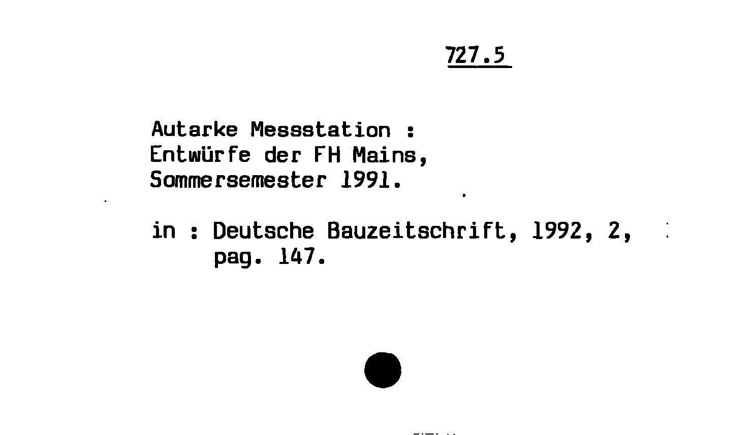 - Autarke Messstation : Entwürfe der FH Mains, Sommersemester 1991