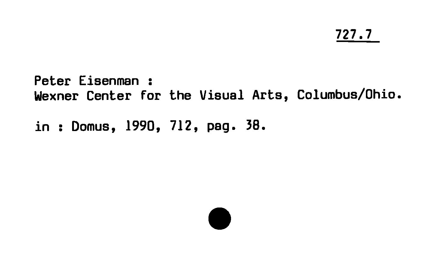 - Peter Eisenman : Wexner Center for the Visual Arts, Columbus/Ohio