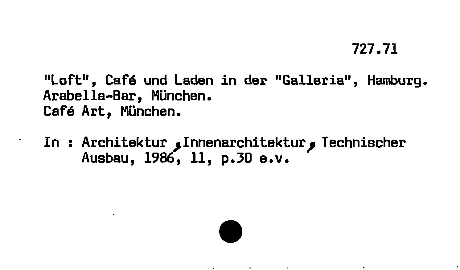 - "Loft", Café und Laden in der "Galleria", Hamburg : Arabella-Bar, München ; Café Art, München