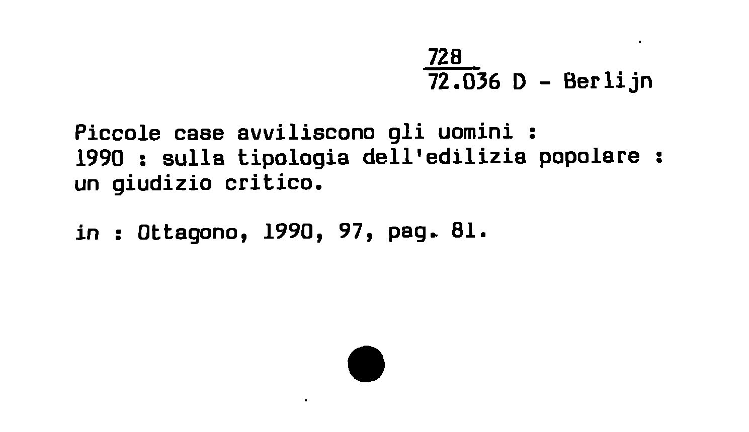 Piccole case avviliscono gli uomini : 1990 : sulla tipoiogia dell'edilizia popolare ; un giudizio critico
