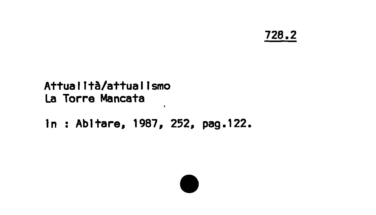 - Attualità /attualismo : La Torre Mancata