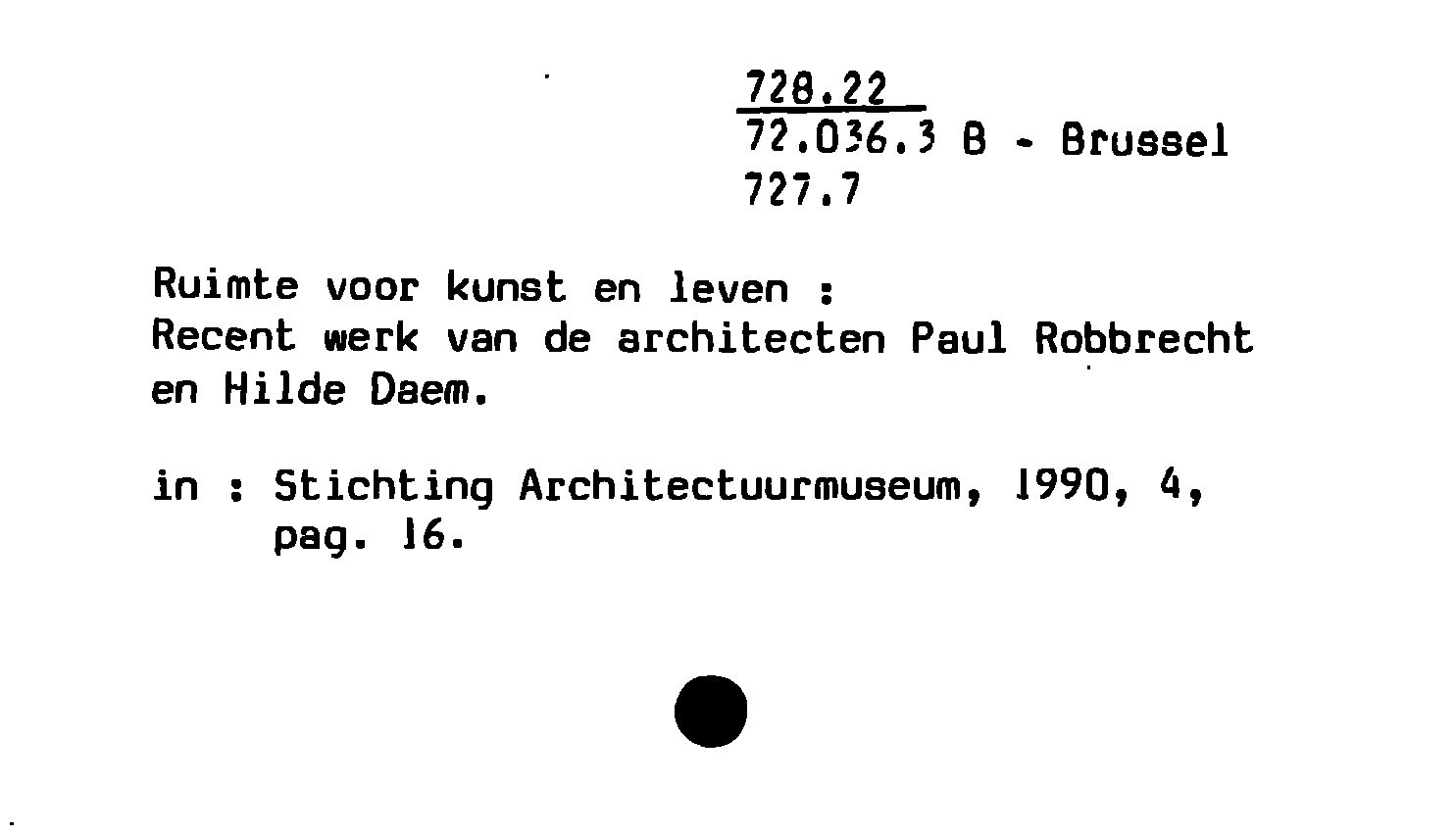 - Ruimte voor kunst en leven : Recent werk van de architecten Paul Robbrecht en Hilde Daem