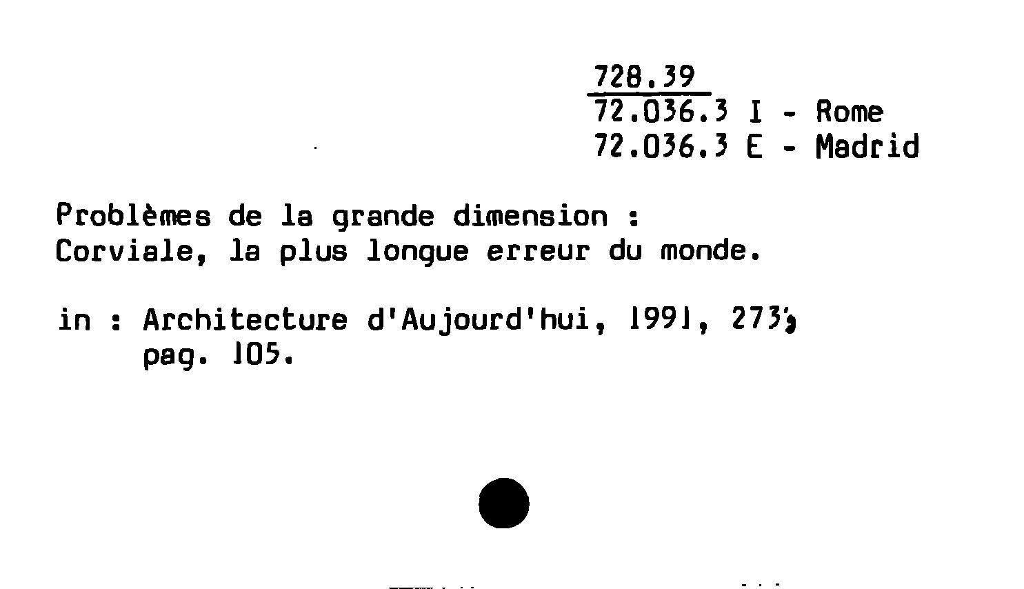 - Problèmes de la grande dimension : Corviale, la plus longue erreur du monde