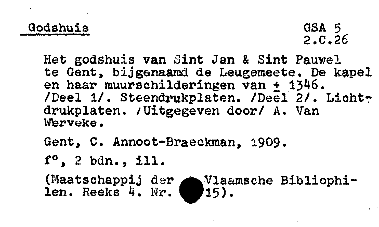 - Het godshuis van Sint Jan & Sint Pauwel te Gent, bijgenaamd de Leugemeete : de kapel en haar muurschilderingen van +/- 1346 : licht- en steendrukplaten met toelichting.