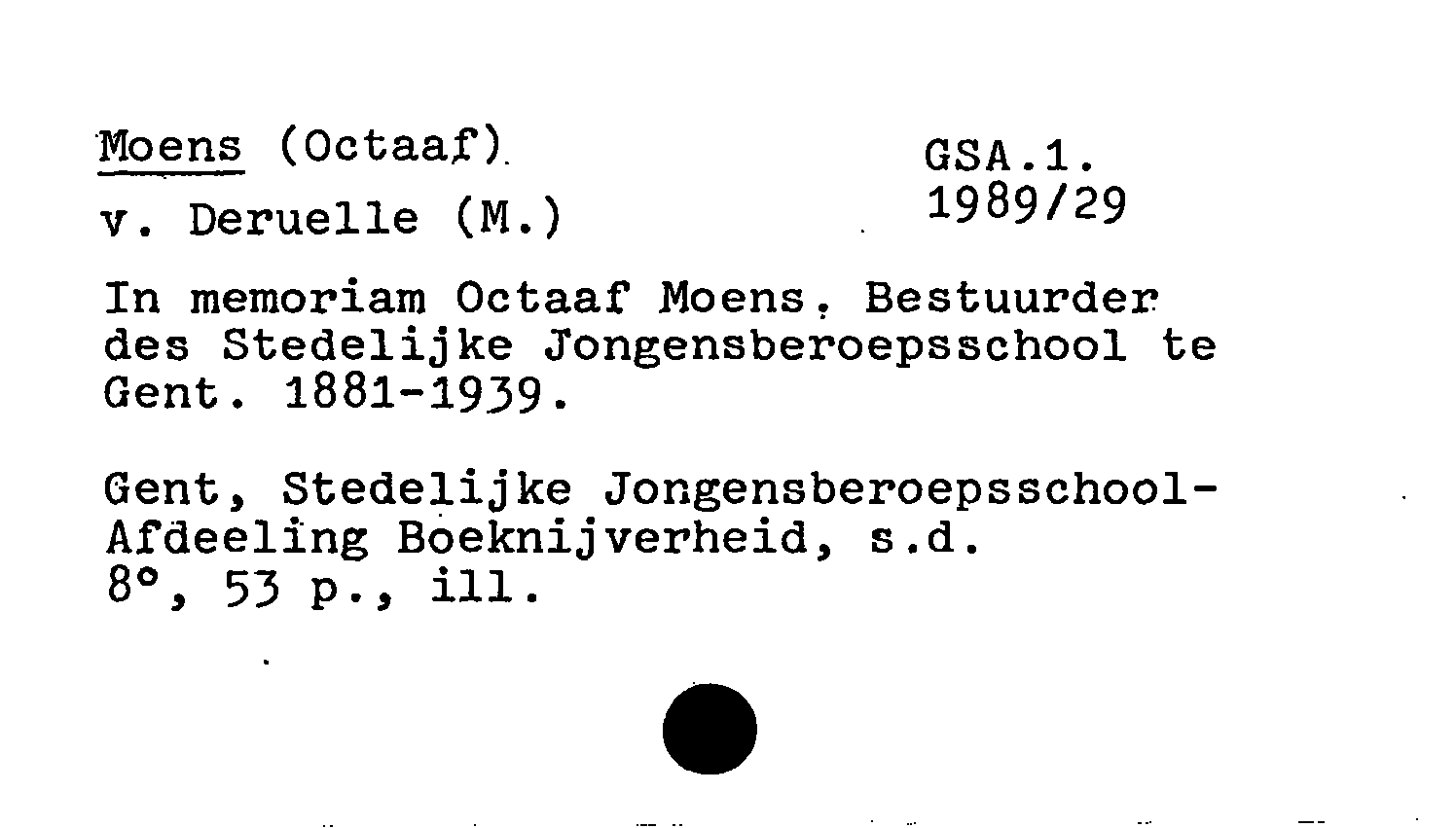 - In memoriam Octaaf Moens : bestuurder der stedelijke jongensschool te Gent 1881-1939.