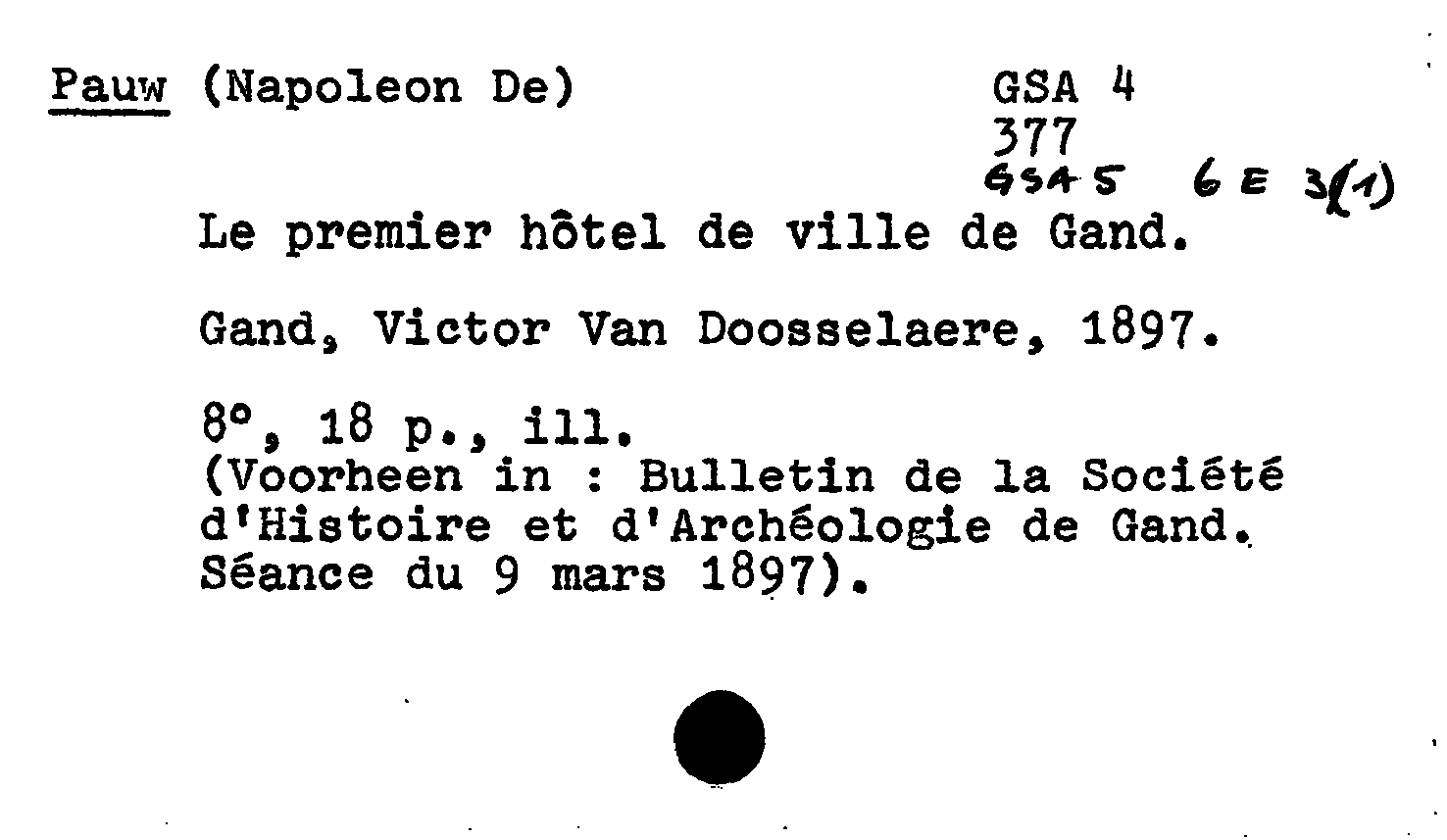 - Voorheen in : Bulletin de la Société d'Histoire et d'Archéologie de Gand. Séance du 9 mars 1897