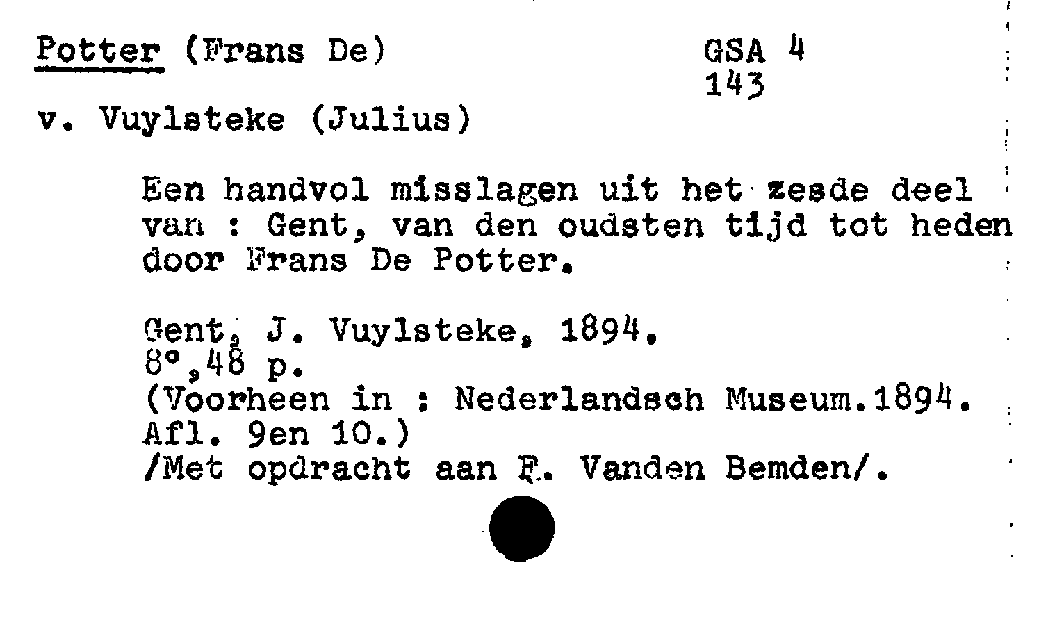 - Een handvol misslagen uit het zesde deel van Gent, van den oudsten tijd tot heden door Frans De Potter