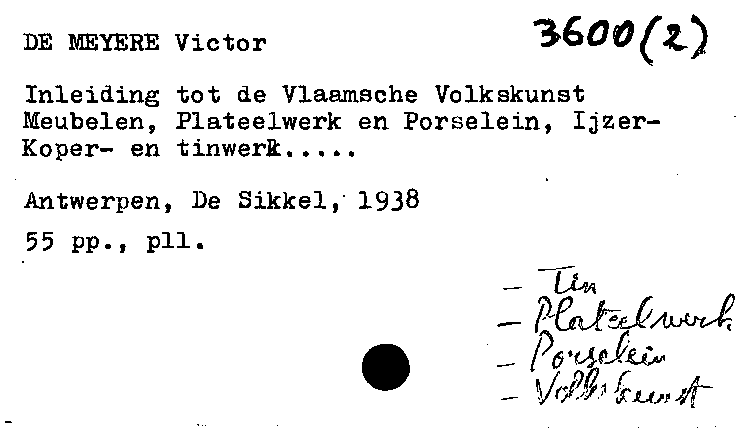 - Inleiding tot de Vlaamsche volkskunst : meubelen, plateelwerk en porselein, ijzer-, koper- en tinwerk, glaswerk, vlechtwerk, schilderkunst, snij-, boetseer- en beeldhouwwerk, volksprenten, godsdienstige huisversieringen, knipwerk, huiselijke werken, juweelen, snuisterijen