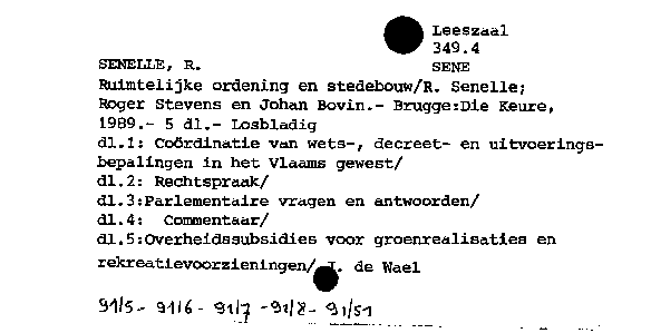 - I. Wetgeving; II. Rechtspraak; III. Rechtspraak; IV. Artikelsgewijze commentaar; V. Overheidssubsidies inzake groenrealisaties en rekreatievoorzieningen