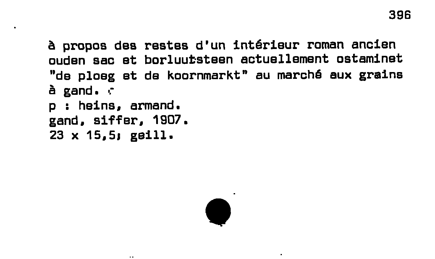 - à propos des restes d'un intérieur roman ancien ouden sac et borluutsteen actuellement ostaminet "de ploeg et de koornmarkt" au marché aux grains a gand
