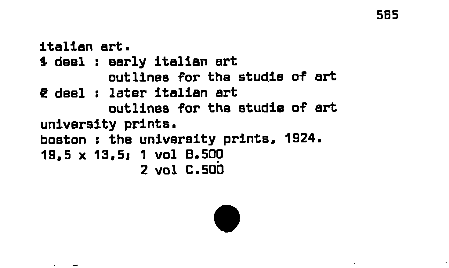 - itallan art. le deel : early italian art, outlines for the studie of art. 2e deel : later italian art, outlines for the studie of art.