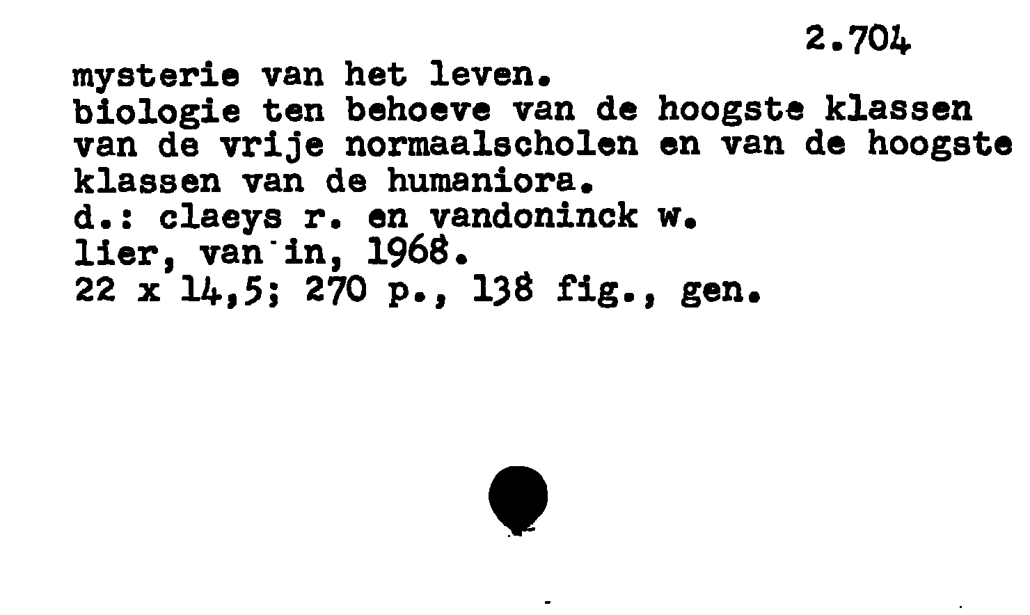 - mysterie van het leven. biologie ten behoeve van de hoogste klassen van de vrije normaalscholen en van de hoogste klassen van de humaniora.