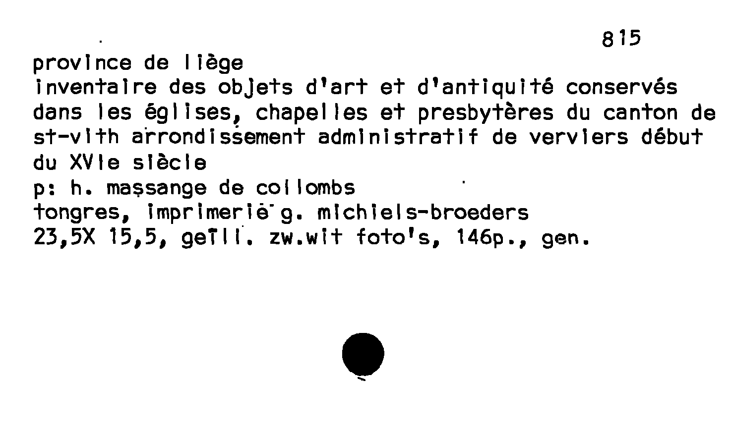 province de liège: inventaire des objets d'art et d'antiquité conservés dans les églises, chapelles et presbytères du canton de st-vith, arrondissement administratif de verviers, début du XVIe siècle
