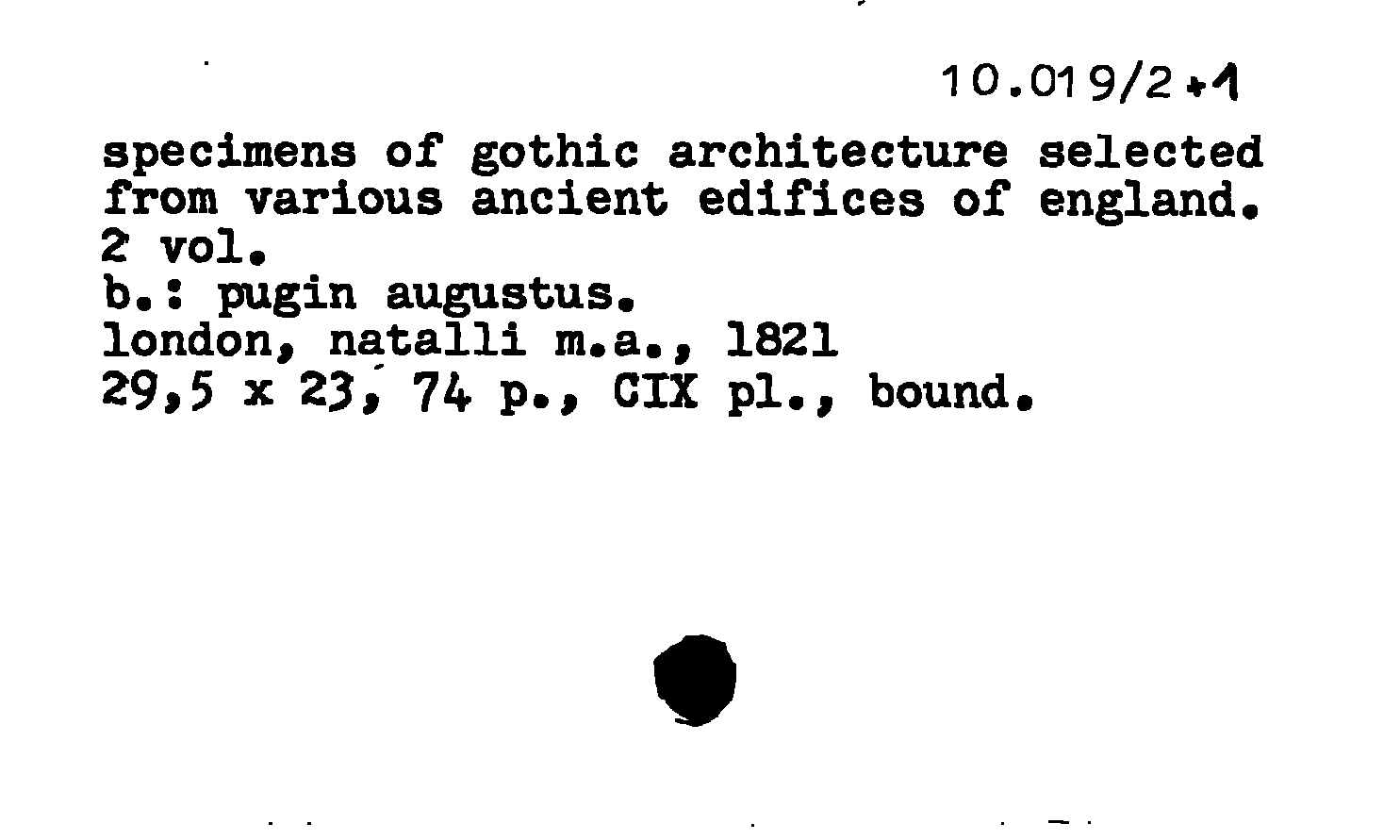 - specimens of gothic architecture selected from various ancient edifices of england. 2 vol.