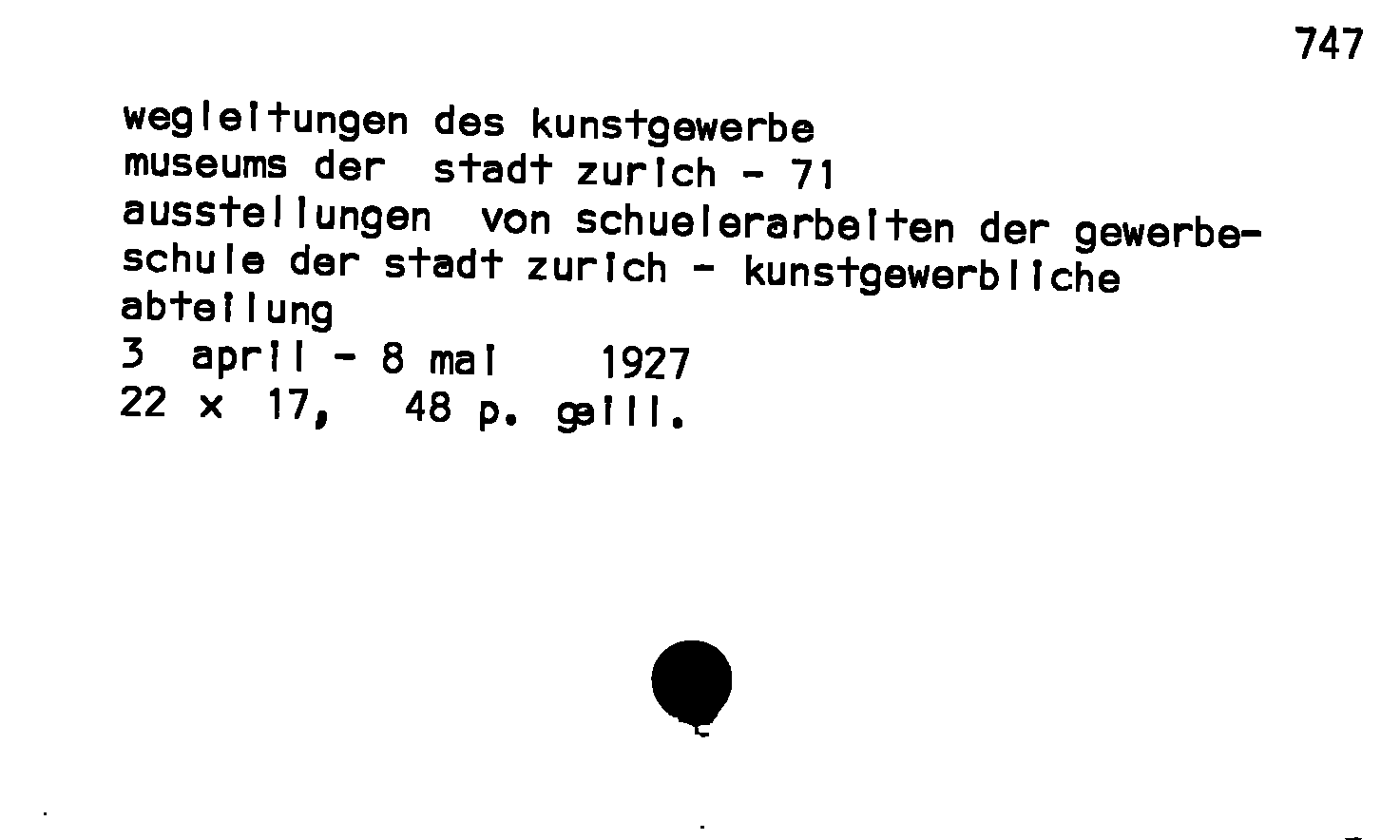 - wegleitungen des kunstgewerbe. museums der stadt zurich - 71 ausstellungen von schuelerarbeiten der gewerbeschule der stadt zurich - kunstgewerbliche abteilung. 3 april - 8 mai 1927