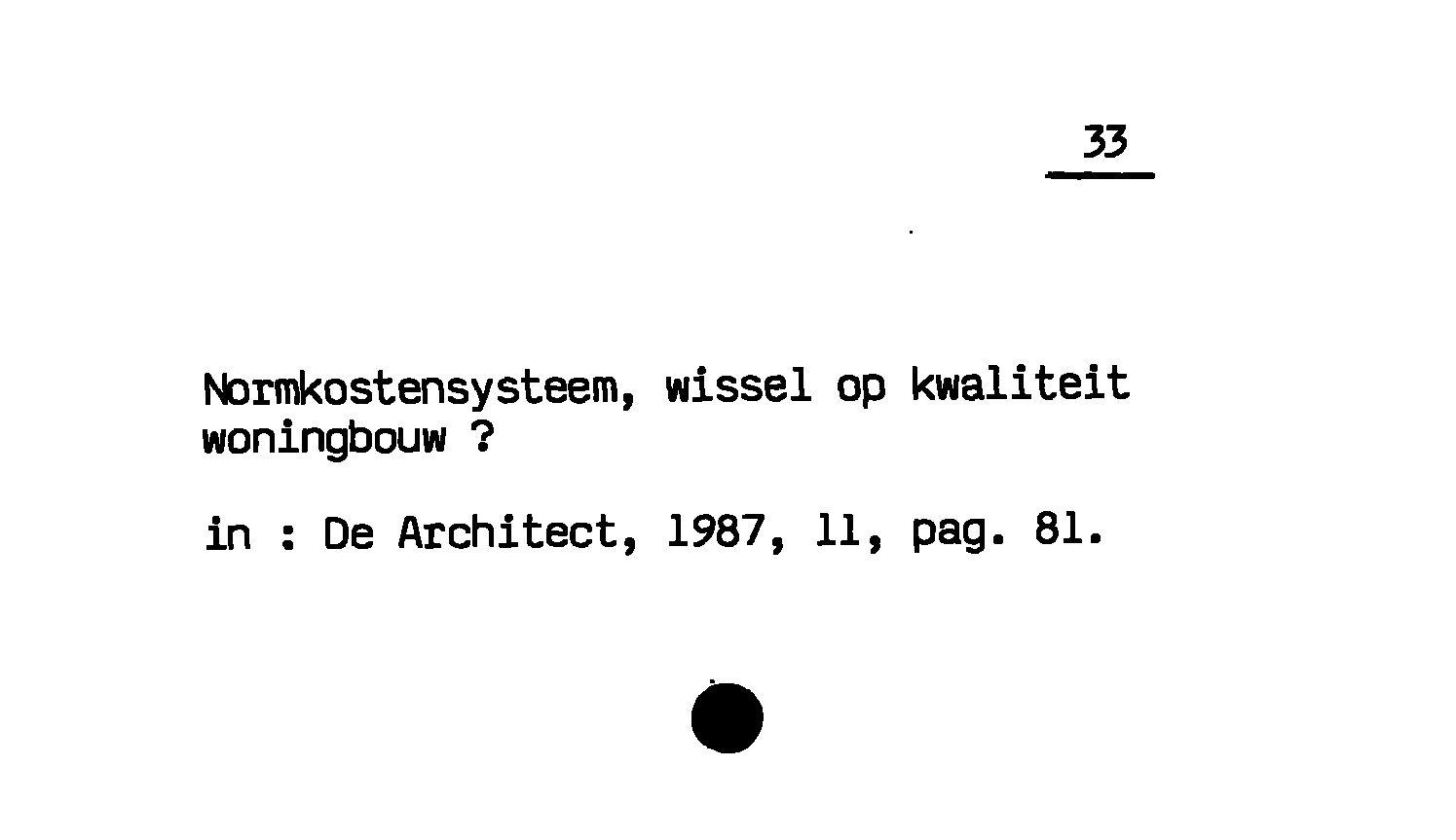 - Normkostensysteem, wissel okwaliteit woningbouw ?