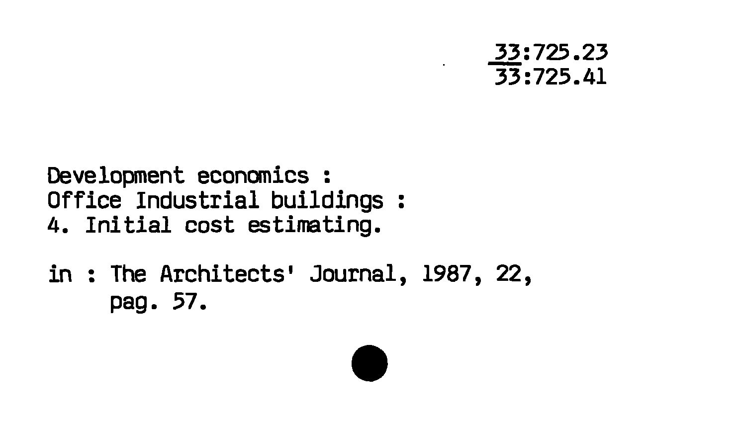 Development economics : Office Industrial buildings ; 4. Initial cost estimating