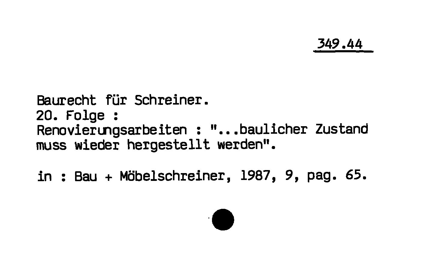 - Baurecht für Schreiner : 20. Folge ; Renovierungsarbeiten : "baulicher Zustand muss wieder hergestellt werden"