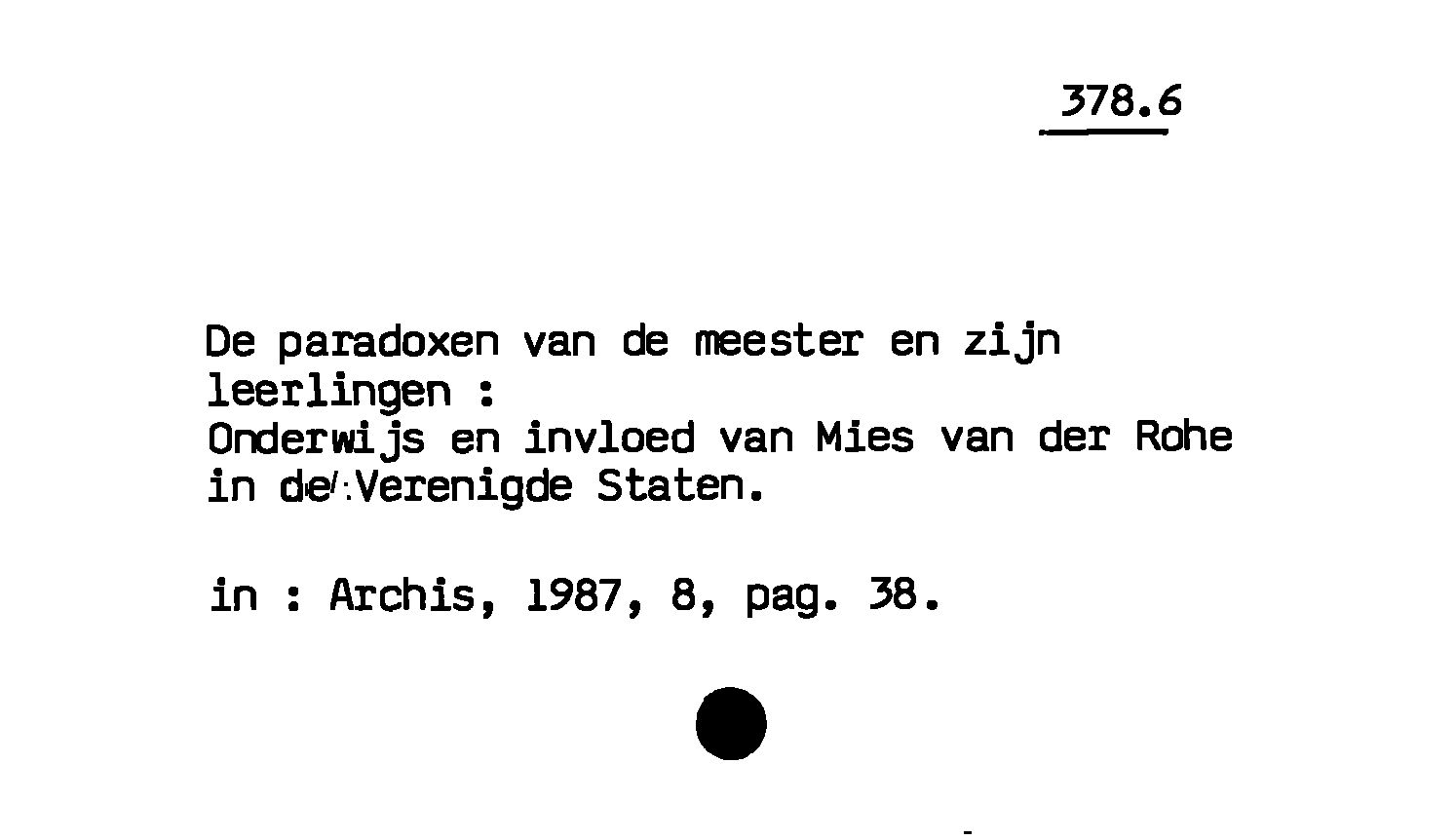 De paradoxen van de meester en zijn leerlingen ; Onderwijs en invloed van Mies van der Rohe in de Verenigde Staten