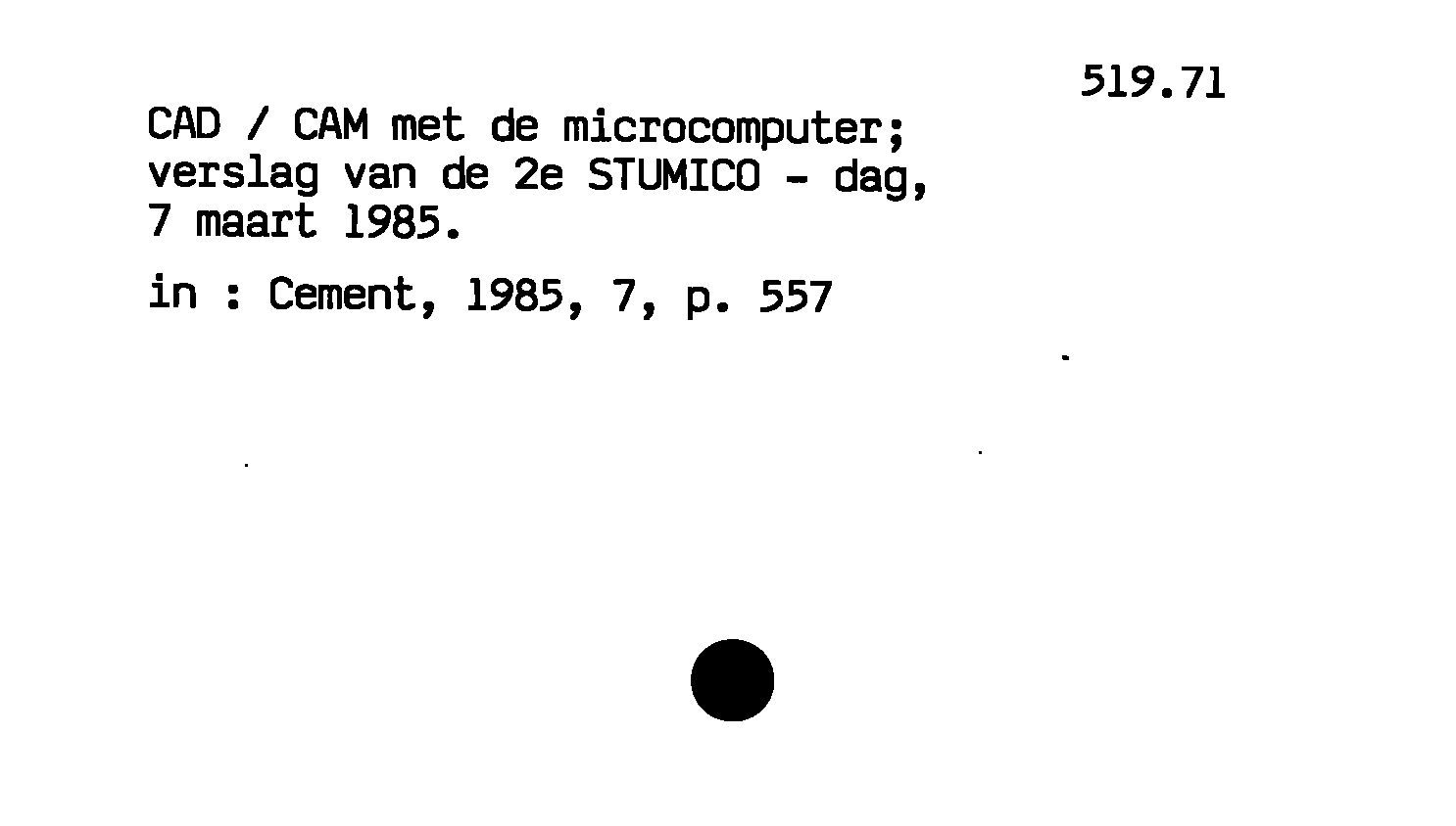 - CAD / CAM met de microcomputer : verslag van de 2e STUMICO - dag, 7 maart 1985