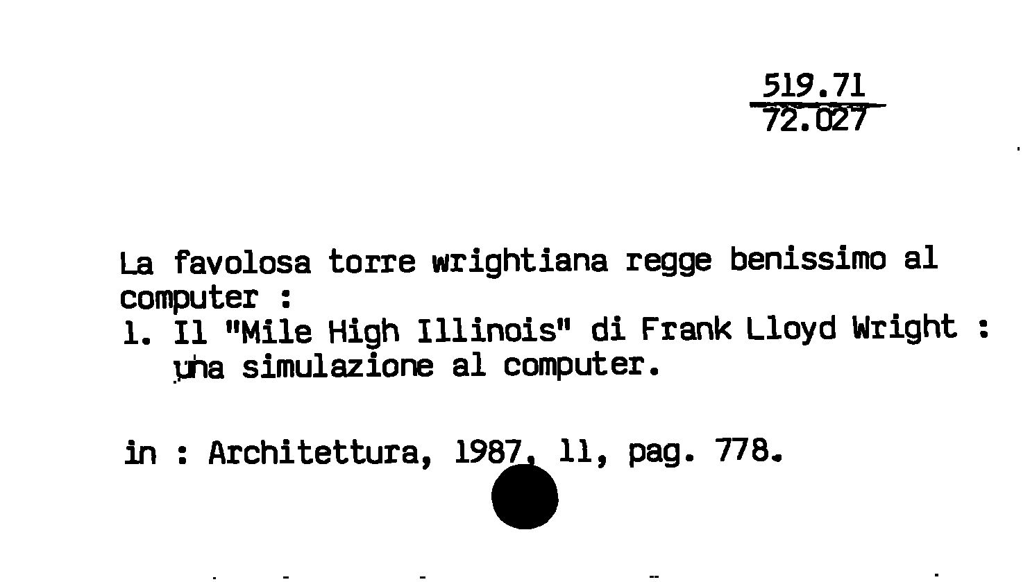 - La favolosa torre wrightiana regge benissimo al computer : l. Il "Mile High Illinois" di Frank Lloyd Wright ; una simulazione al computer