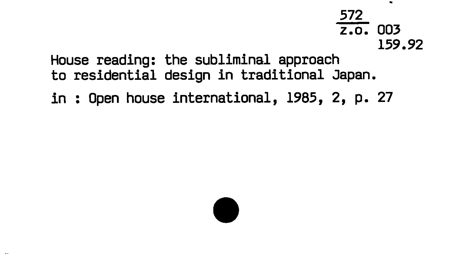 - House reading : the subliminal approach to residential design in traditional Japan