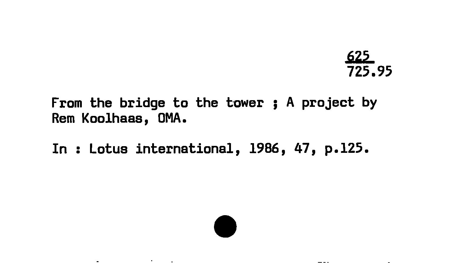 - From the bridge to the tower : A project by Rem Koolhaas, OMA