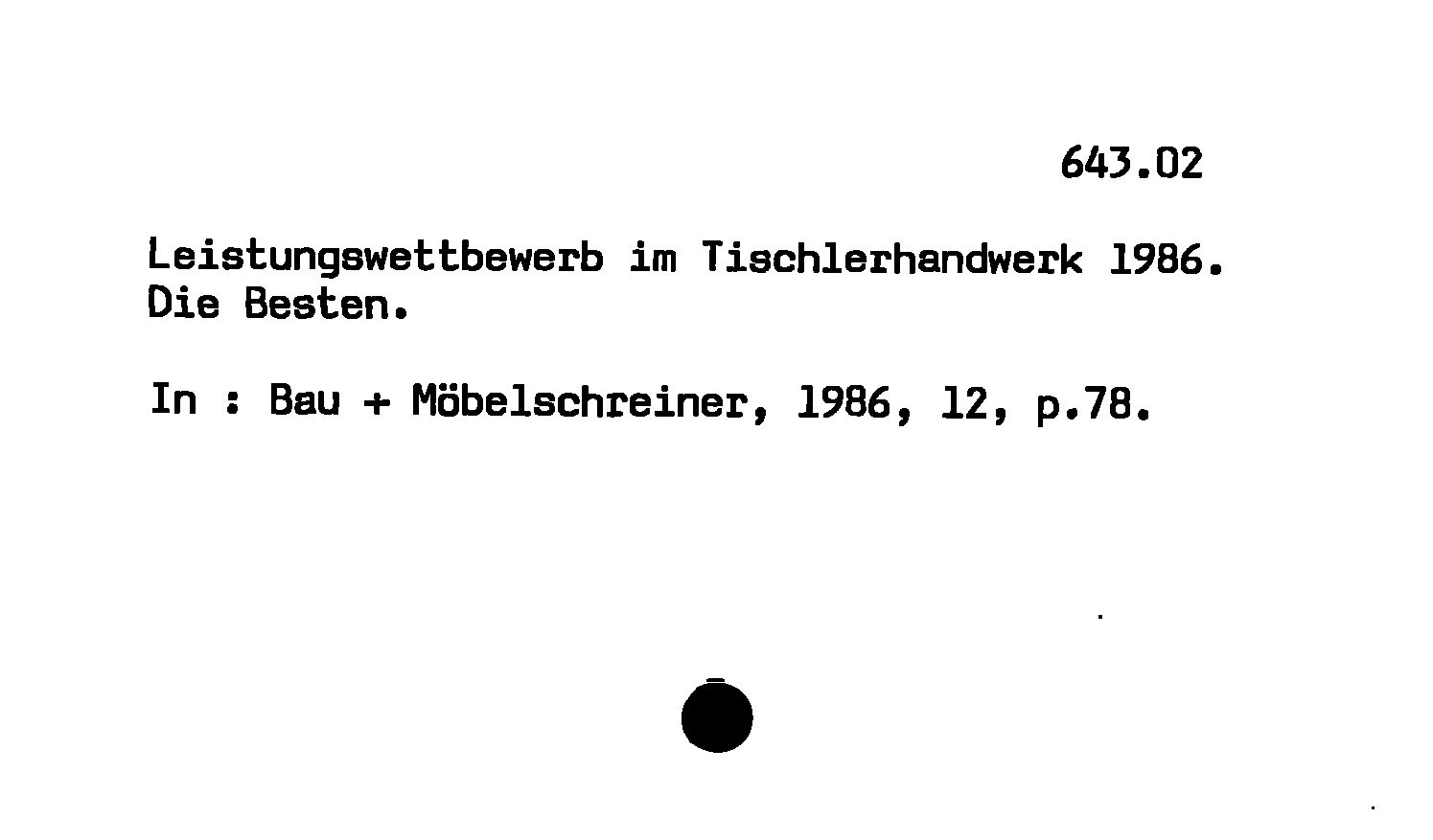 - Leistungswettbewerb im Tischlerhandwerk 1986 : Die Besten
